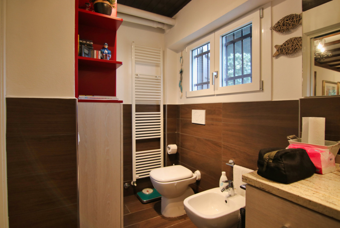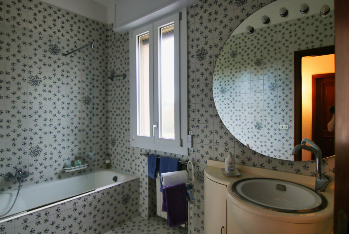 Numero bagni villetta 2 totali, 1 a piano terra finestrato con doccia, 1 al 1° piano finestrato con vasca e doccia integrata