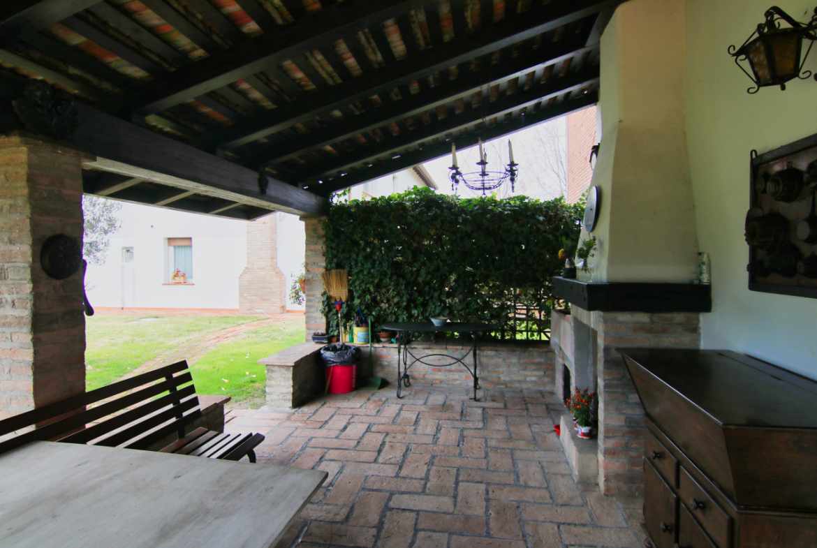 Portico/veranda/pergolato 1 portico di 40.10 mq con travatura in legno e copertura in coppi con uscita dal soggiorno a piano terra della villetta