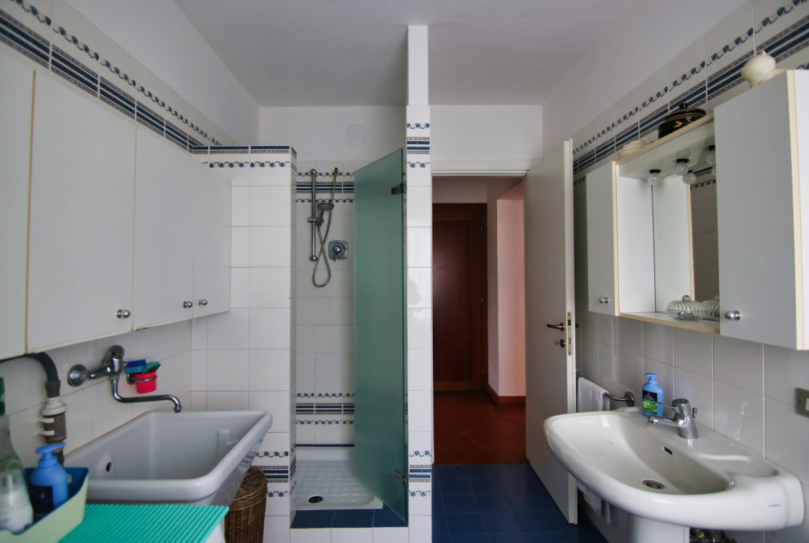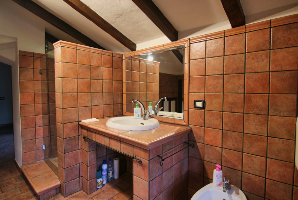 Numero bagni casa grande 4 totali, 1 bagno/lavanderia a piano terra finestrato con doccia, 2 al 1° piano ciechi da ristrutturare, 1 nel sottotetto finestrato con box doccia