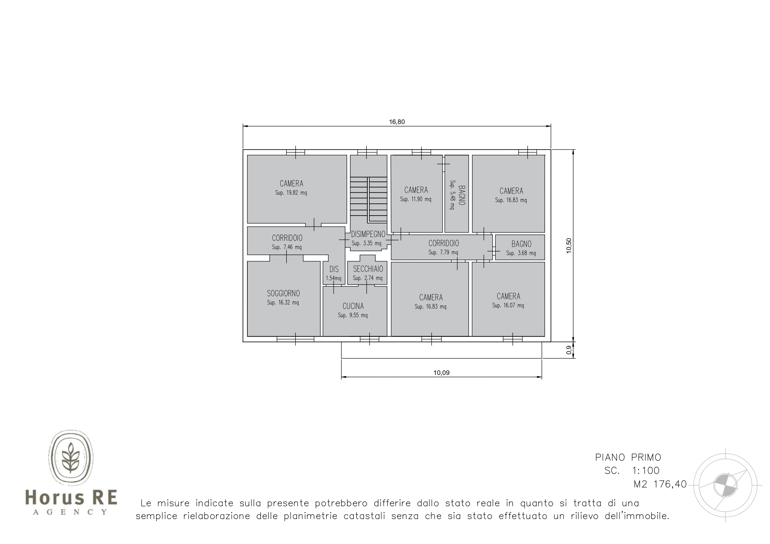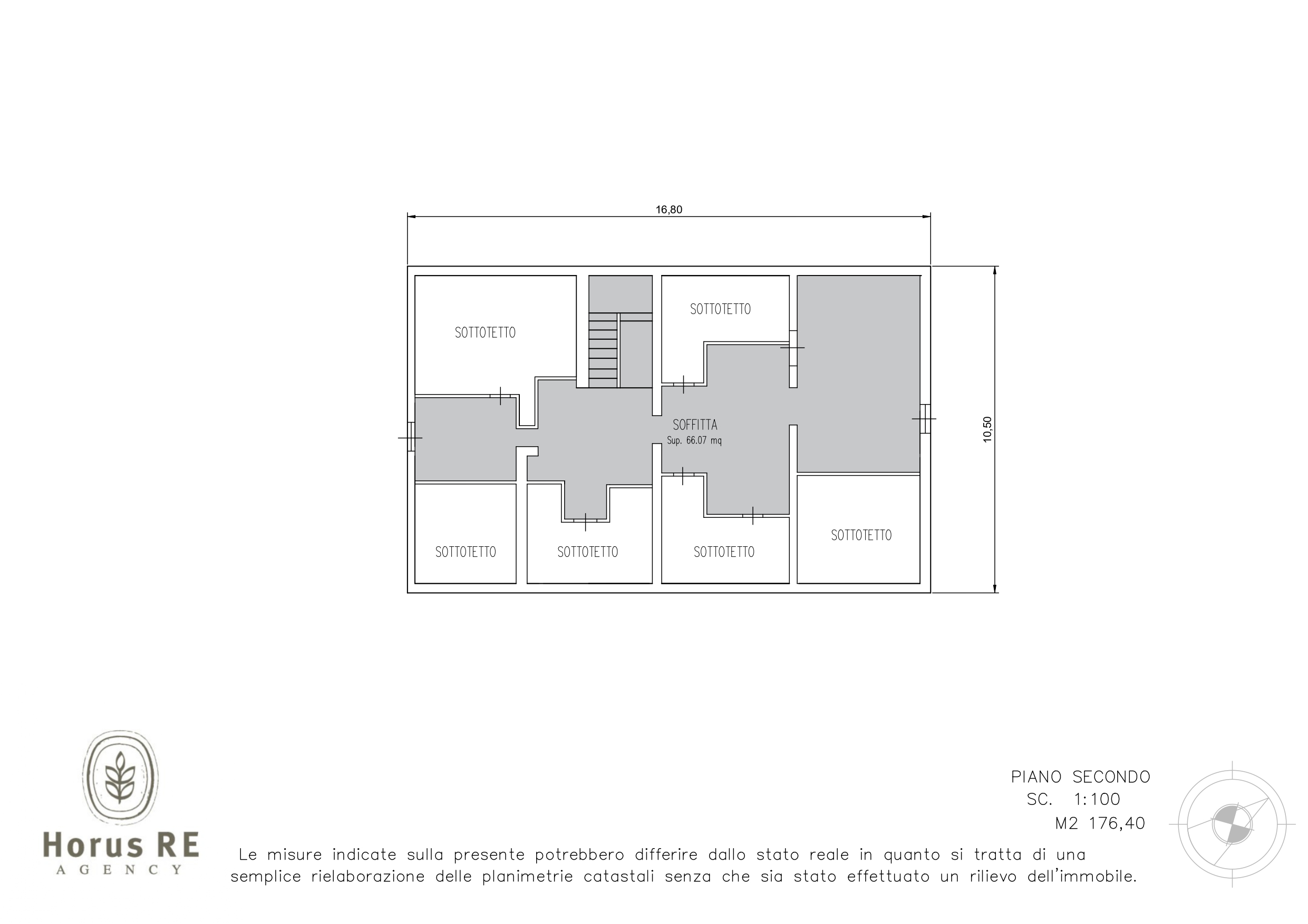 Piano secondo casa planimetria quotata