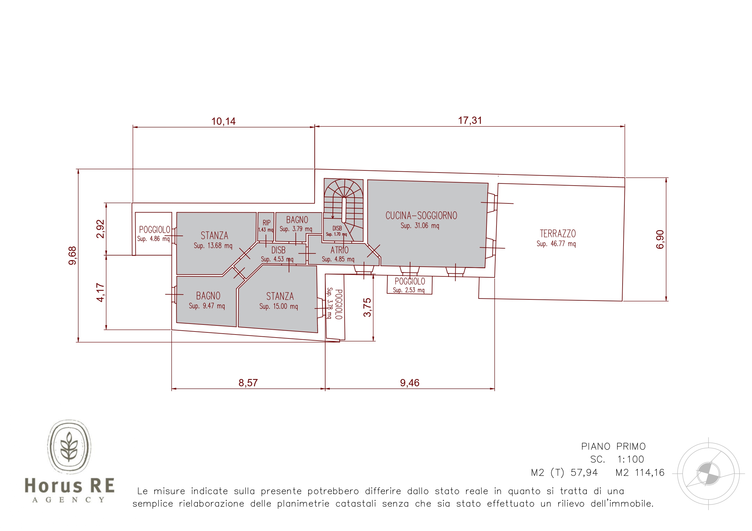 Piano primo planimetria quotata
