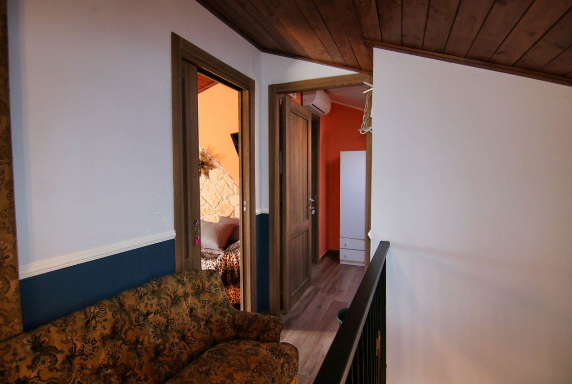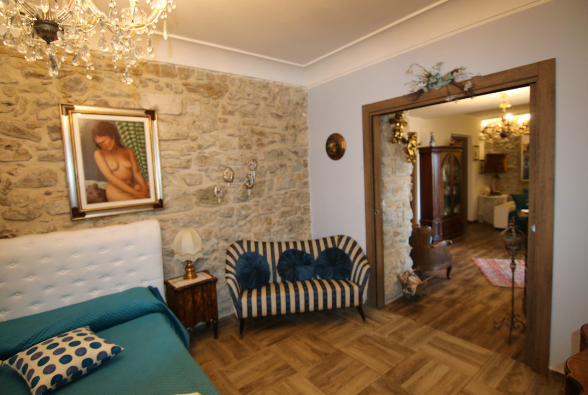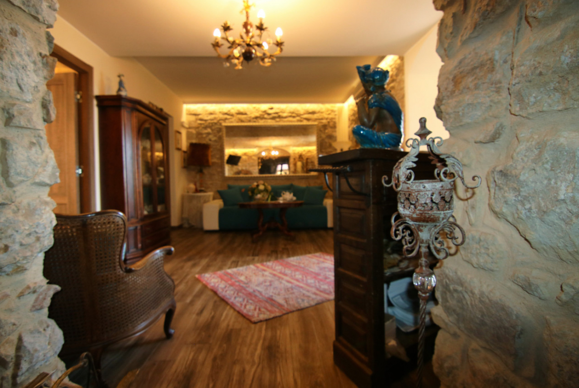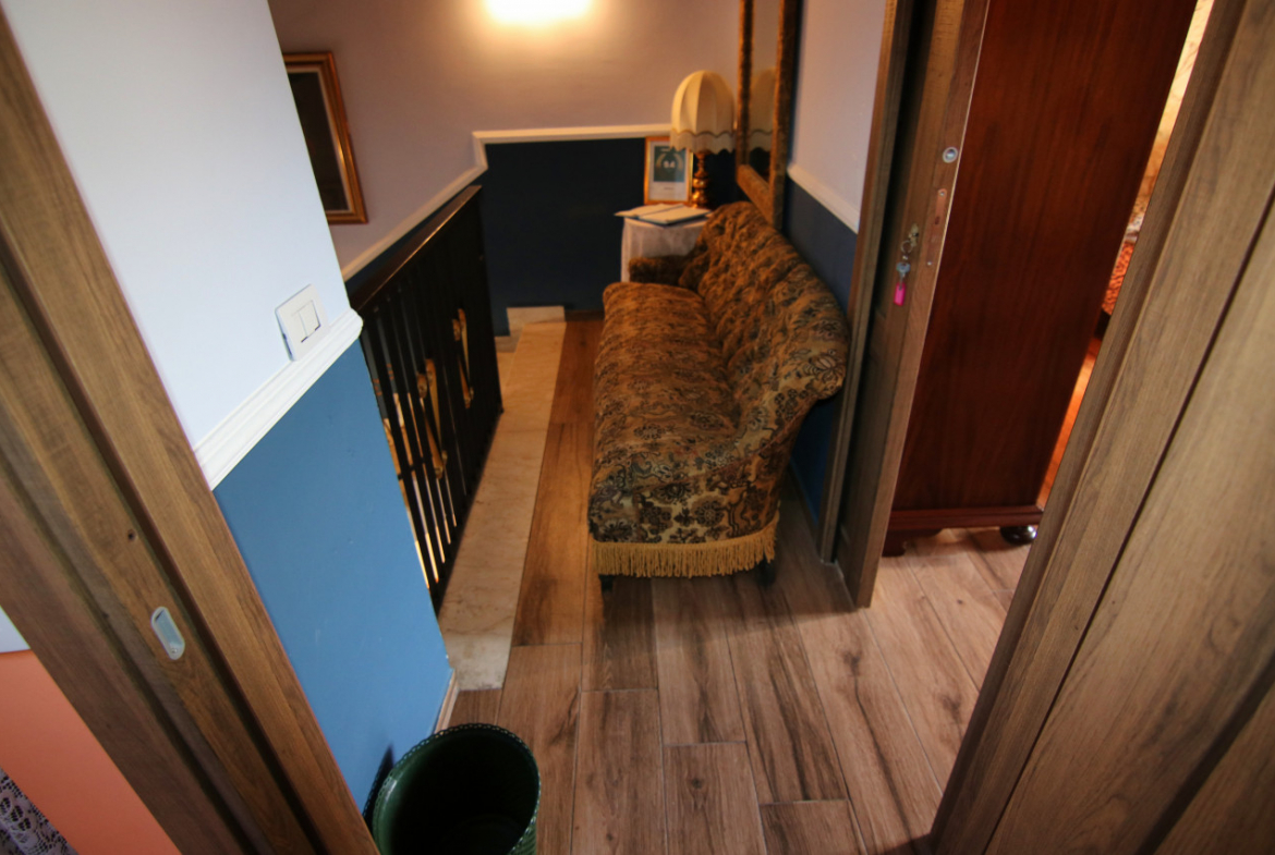 Lorenzo riporta gli ospiti all’ingresso e sale al piano superiore. «Qui viveva davvero il mio antenato», racconta. Si entra nel soggiorno che ha mantenuto il suo fascino antico , seguito da un piccolo cucinino accogliente e luminoso con una splendida vista sui tetti e sulle colline circostanti. Allo stesso piano trovano posto un elegante suite con bagno e seconda camera, ed un ulteriore stanza con bagno il tutto arredato e corredato con gusto scegliendo tra mobili d’epoca e pezzi artigianali.