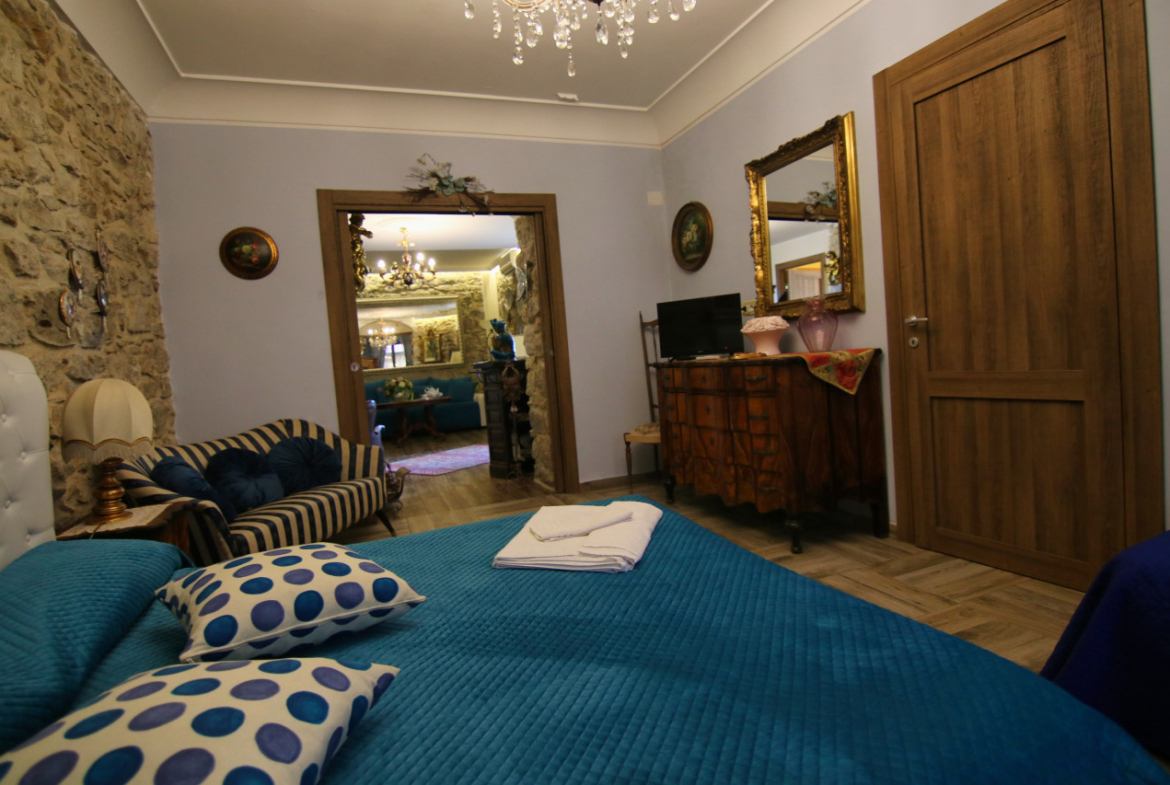 Infine si sale all’ultimo piano, dove si trovano altre due stanze matrimoniali ognuna con con bagno privato, ed una con il terrazzino che domina il centro storico di Piazza Armerina la città delle 100 chiese.