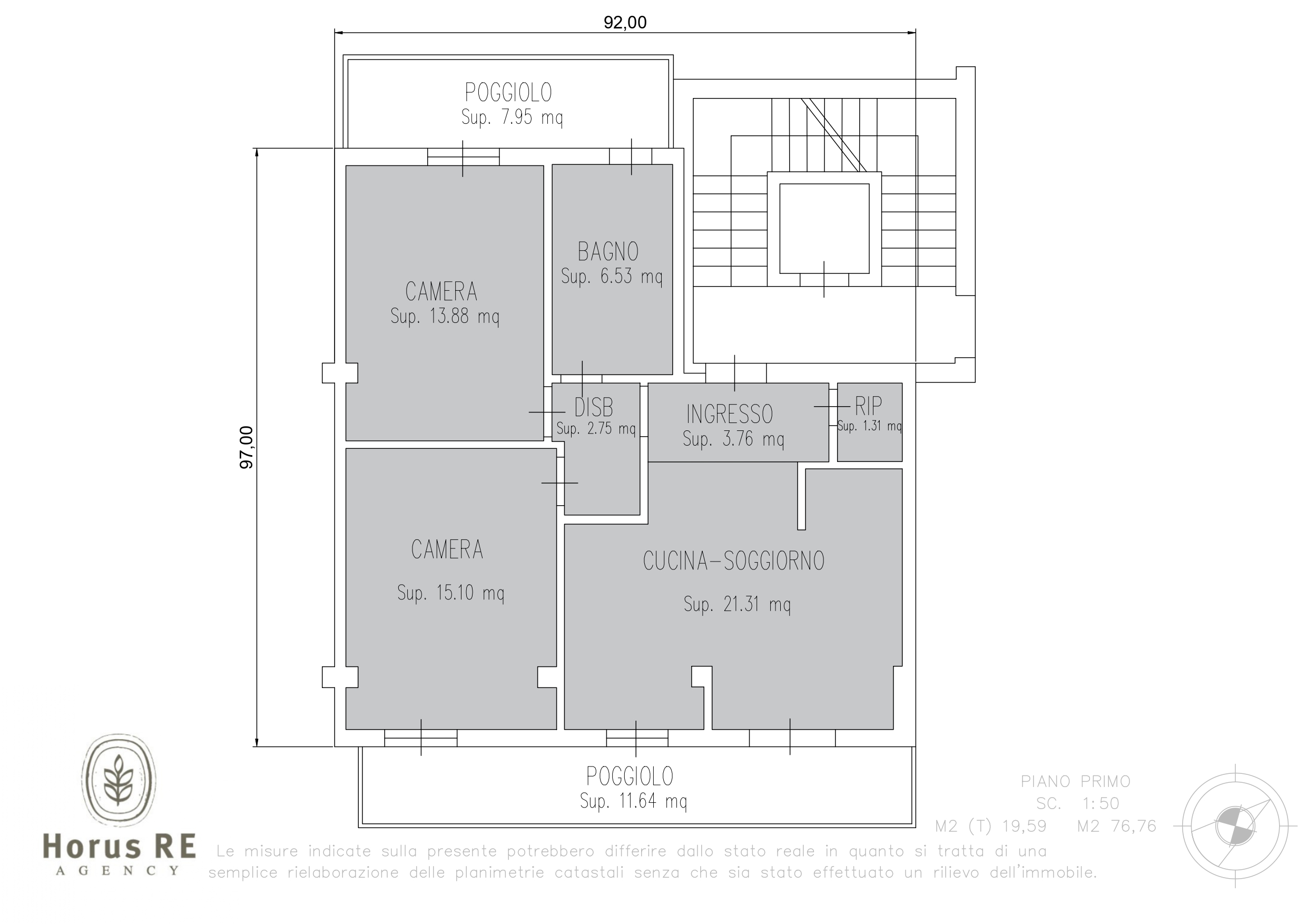 Balconi 2 totali, 1 di mq 10,80 con accesso dalla zona giorno e 1 di mq 7,50 con accesso dal bagno