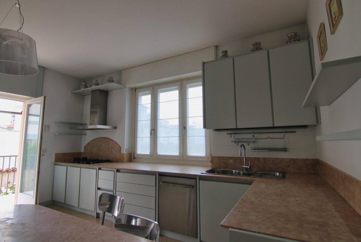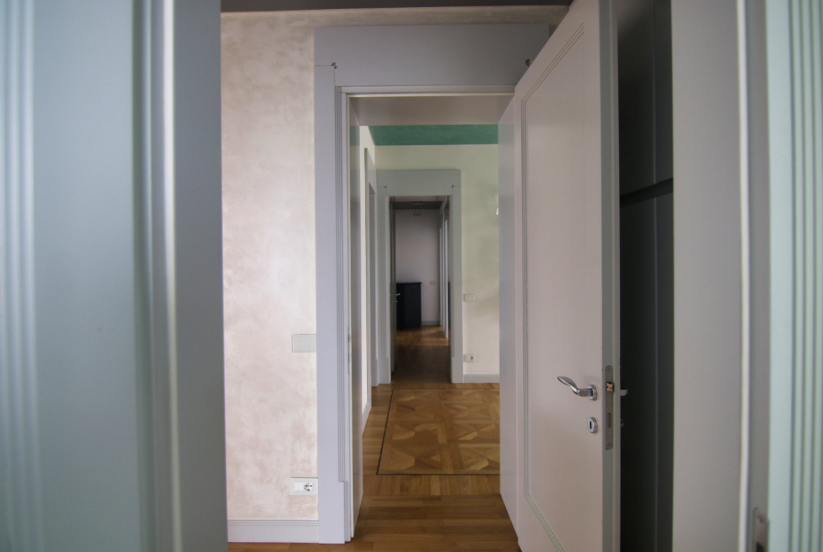 Pavimenti interni piano rialzato Piastrelle in graniglia con inseti in maro in cucina atrio e sala da pranzo, parquet in legno in salotto e soggiorno