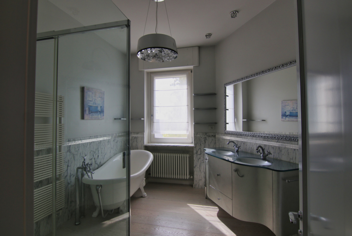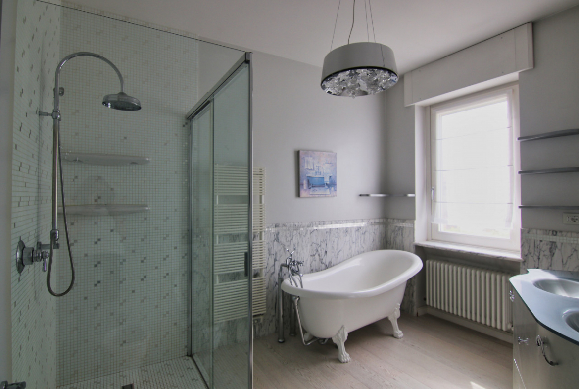 Pavimenti e rivestimenti bagno 1° piano Piastrelle in graniglia piastrelle in ceramica, marmo e spatolato