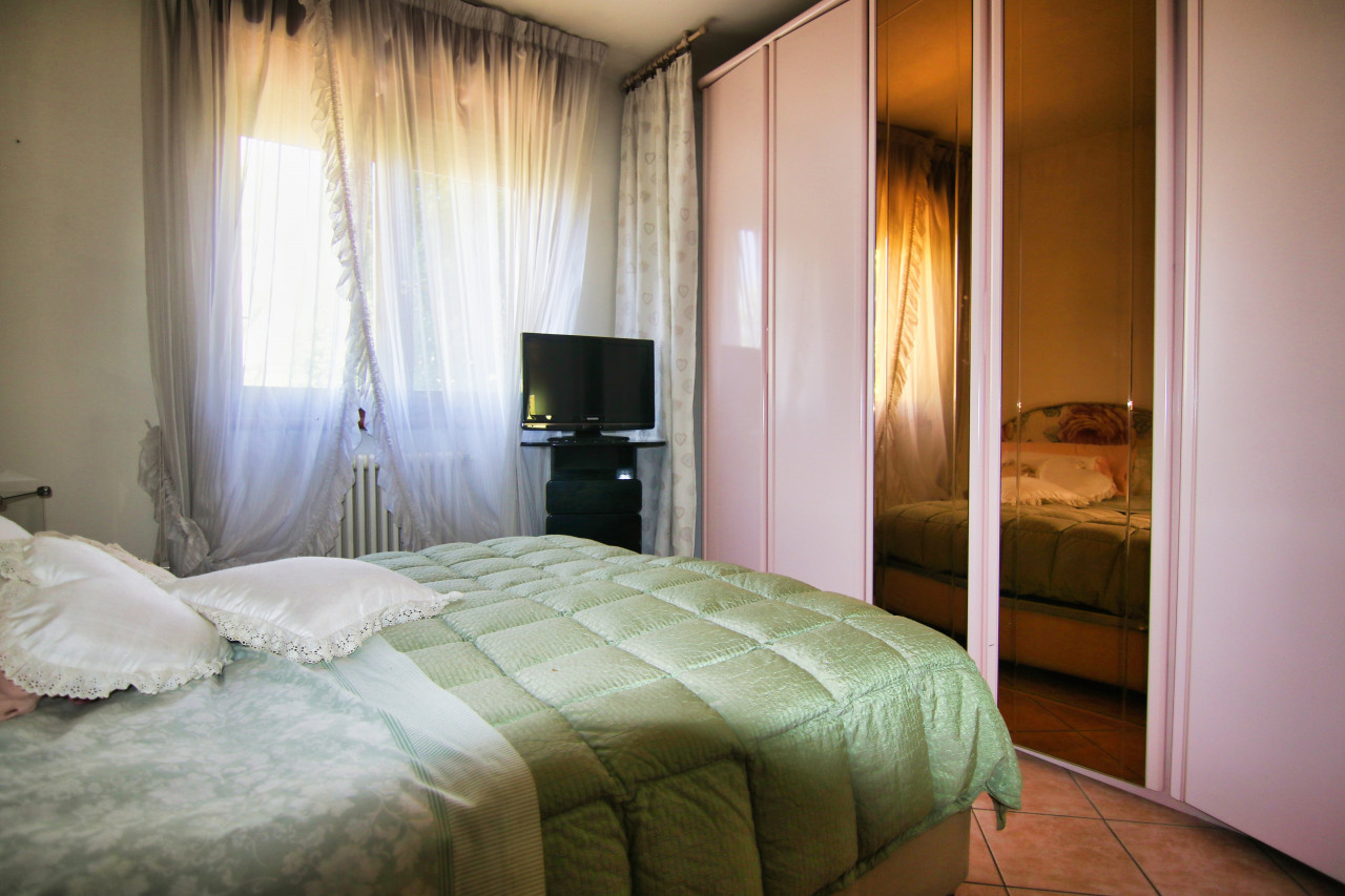 Nella zona notte, due camere matrimoniali offrono pace e silenzio. Sono stanze che sanno accogliere e rassicurare, perfette per chi cerca un luogo dove ritrovare equilibrio e respiro. La loro ampiezza permette di modellarle secondo i propri desideri, trasformandole in rifugi personali in cui lasciare fuori il rumore del mondo.